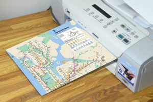 You can access and print the latest MTA New York Subway Map here and access the PDF version of the Subway map here. The problem is that most printers may be just too small to print out the large square sheet that you need for the subway map and you might have to print out separate pages and stick them together with some tape. You can try adjusting the image and use the “shrink to fit” setting when you print, but you may find the map a little hard to read, so all-around, it is a less-than-optimal solution.